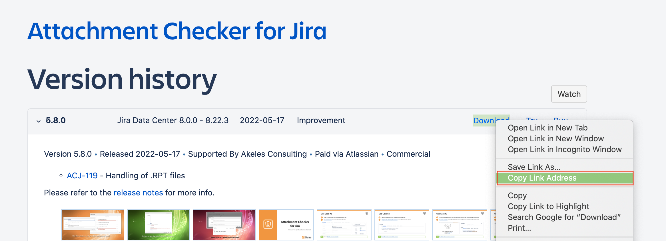 Copy the JAR file (e.g., AttachmentChecker-5.9.0.jar) into your JIRA home directory under