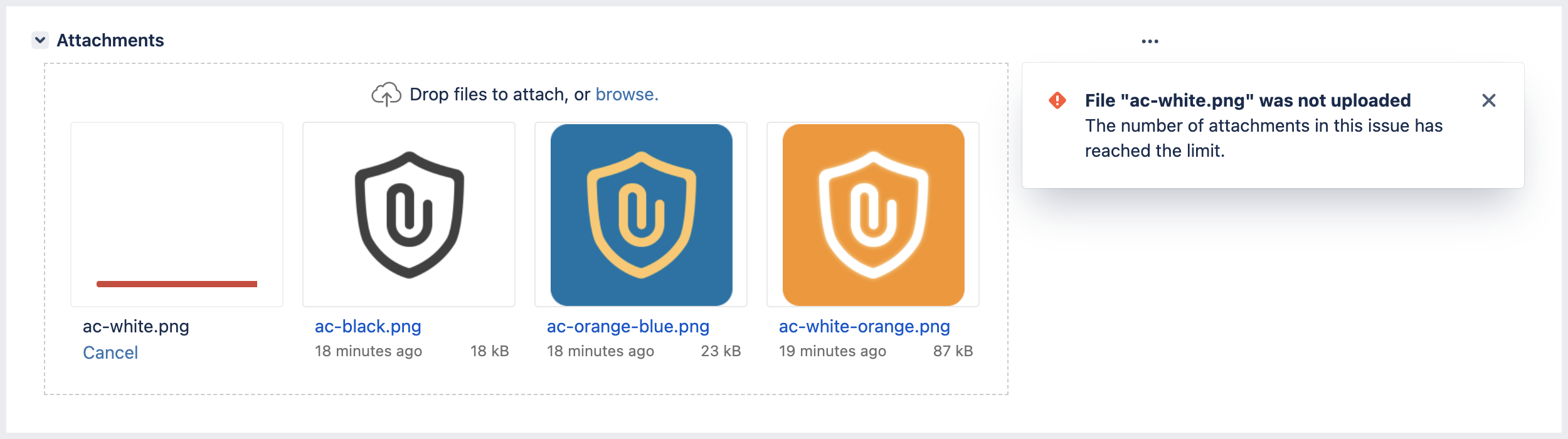Attachment Checker allows admin to specify a limit on the number of attachments allowed per issue.