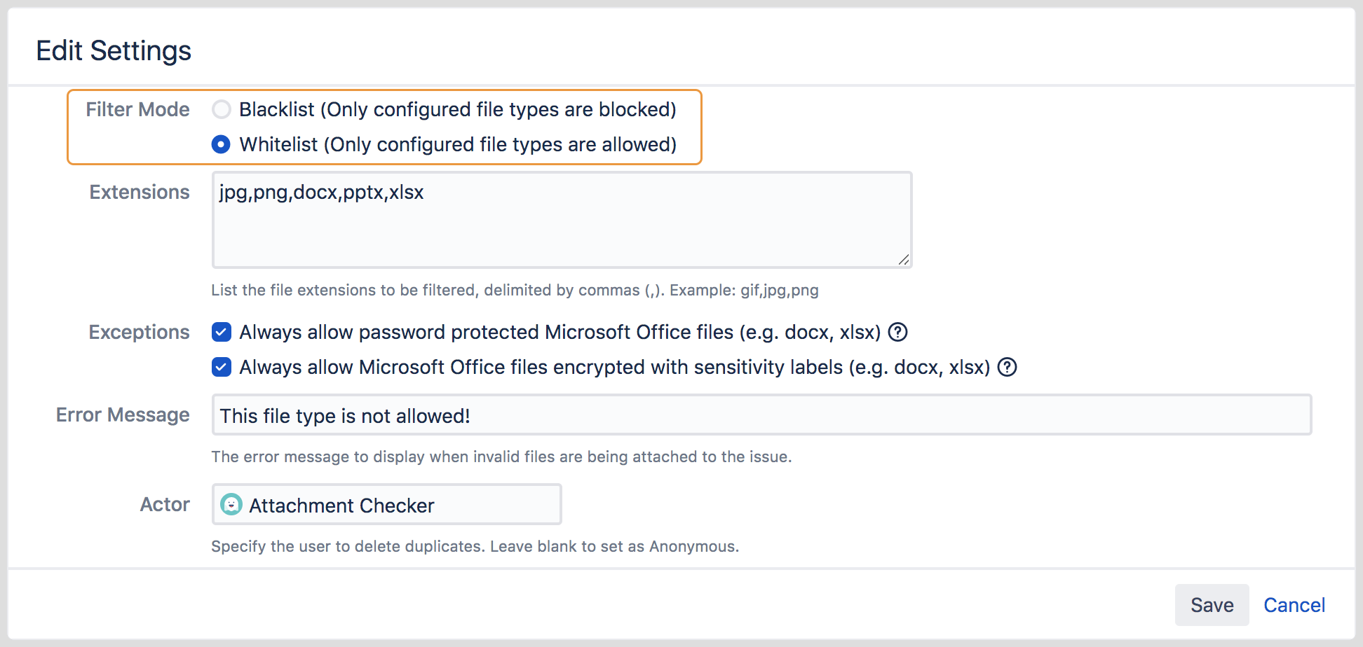 It is now possible to enforce different permissions for different user groups, which can enabled at Attachment Checker Configuration > File Size Checking tab.