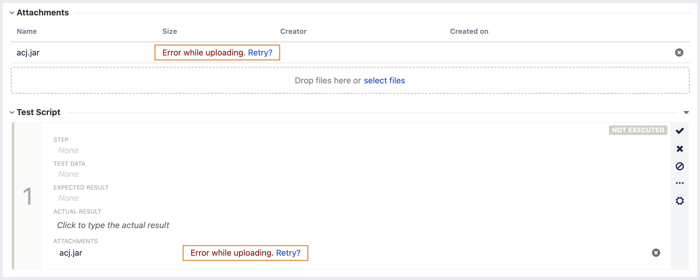 Attachment Checker’s configured error message is not displayed because Zephyr Scale does not display the returned error message.