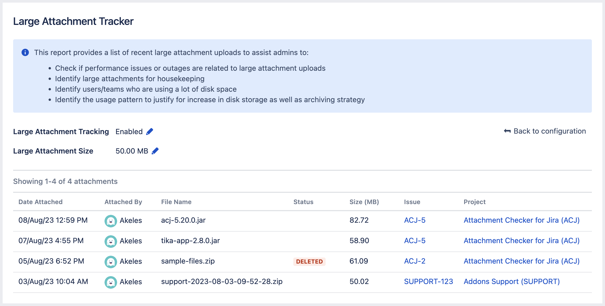 Admins can now track large attachment uploads which is useful in assisting admins to check performance issues, perform housekeeping etc.