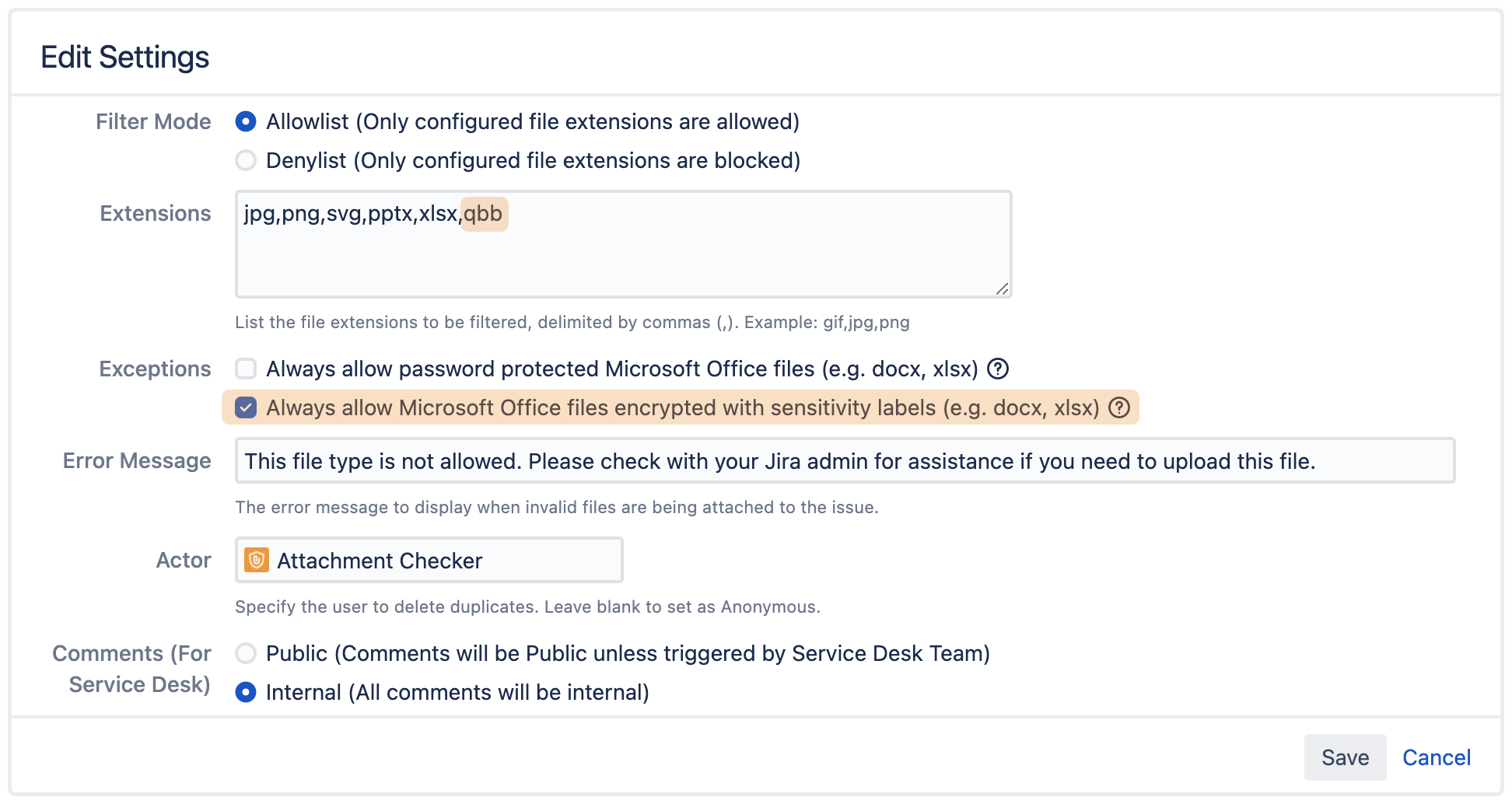 As .QBB (QuickBooks Backup) files does not have a mime type, it may get blocked even though it is in the allowlist.