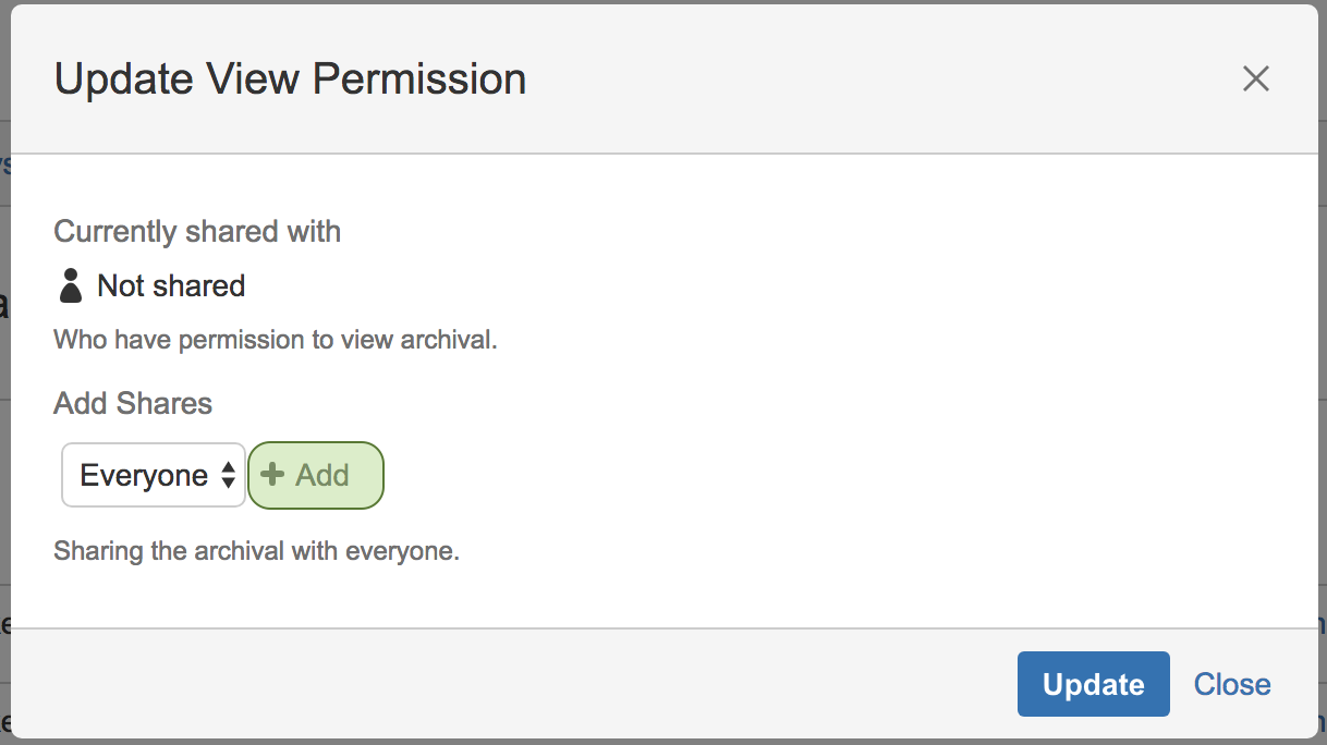 - A dialog will pop up showing the current shares and allowing you to update the shared permissions