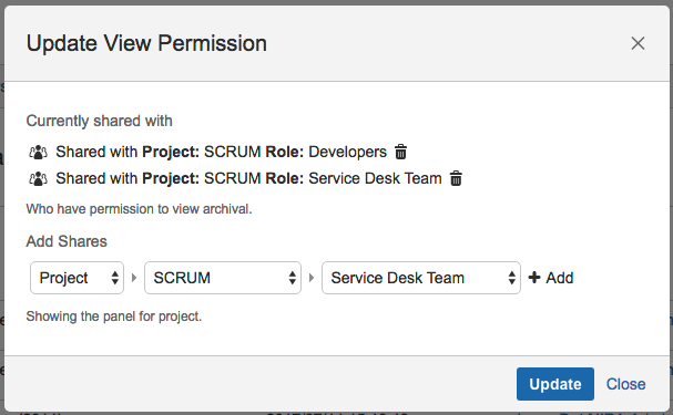 - Click on the Update button to save the changes. You can also click on the trash icon to revoke existing shares.
