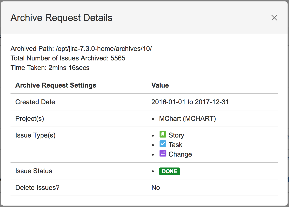 - A dialog will pop up with the archive request details