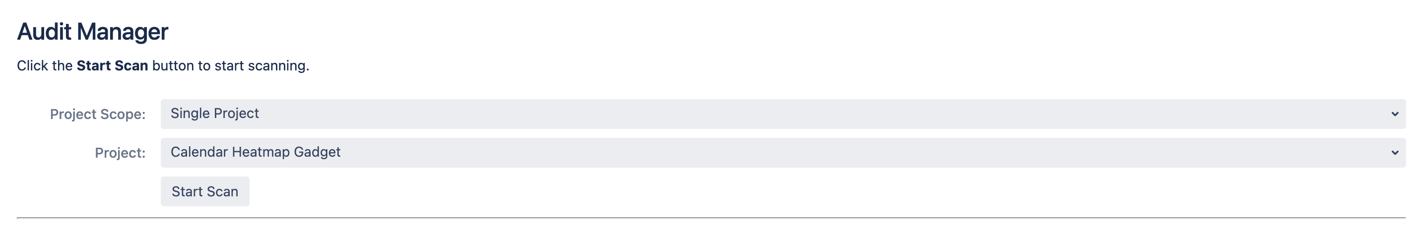 To start the scan, go to User Audit Manager and select the project scope and the project you wish to scan.