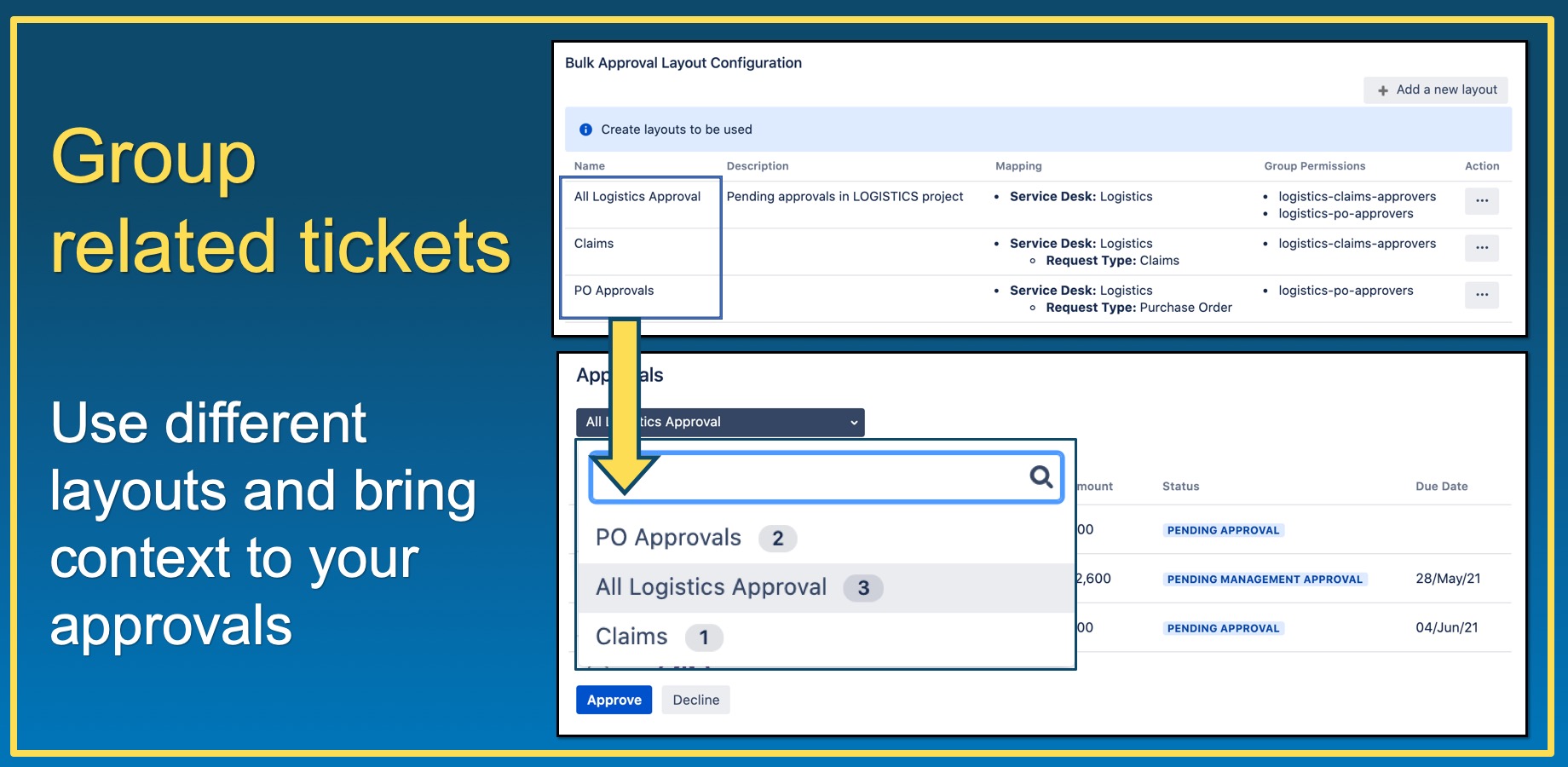 Some requests might need approval before your team can work on them. Bulk Approvals complements Jira Service Management by allowing multiple requests to be selected for approvals at the same time from the Customer Portal.
