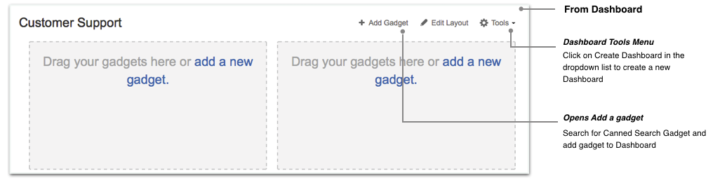 - Type in Canned to filter the search and click on the Add gadget button to add it to the dashboard