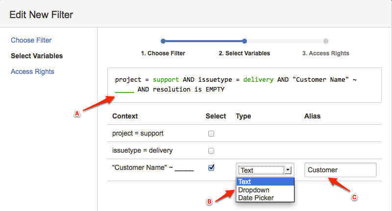 The Canned Filter adapts an existing Jira filter and allows you to select which fields to be displayed for searching and which fields to stay fixed