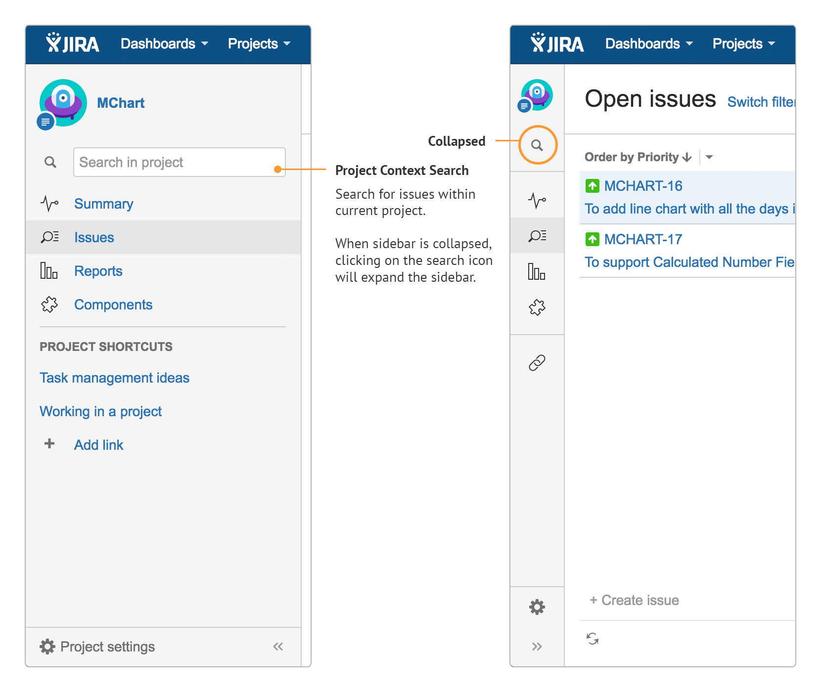 Else, it will list issues of the current selected project matching the search term.