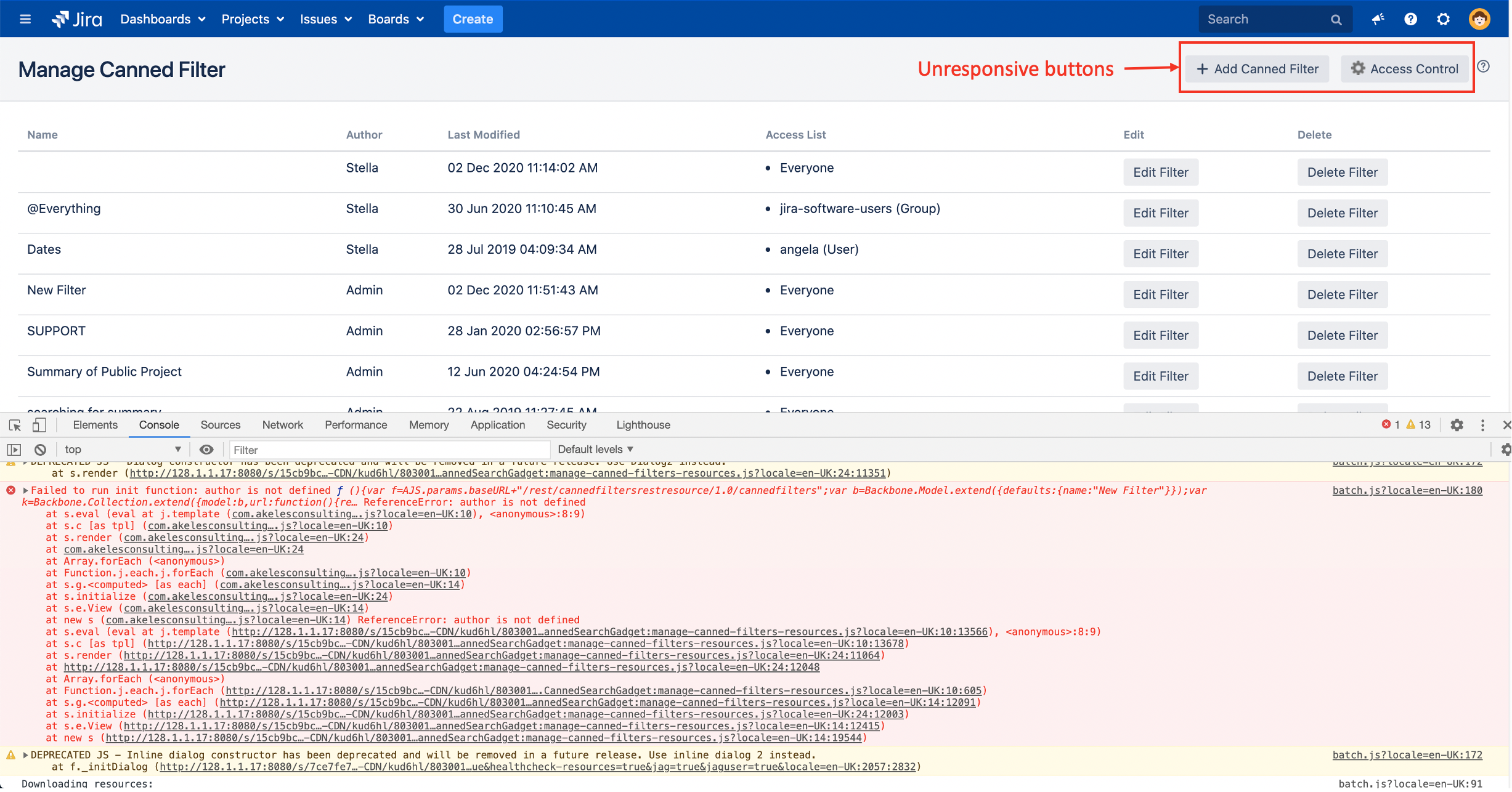 Unable to Manage Canned Filters (Unresponsive buttons)