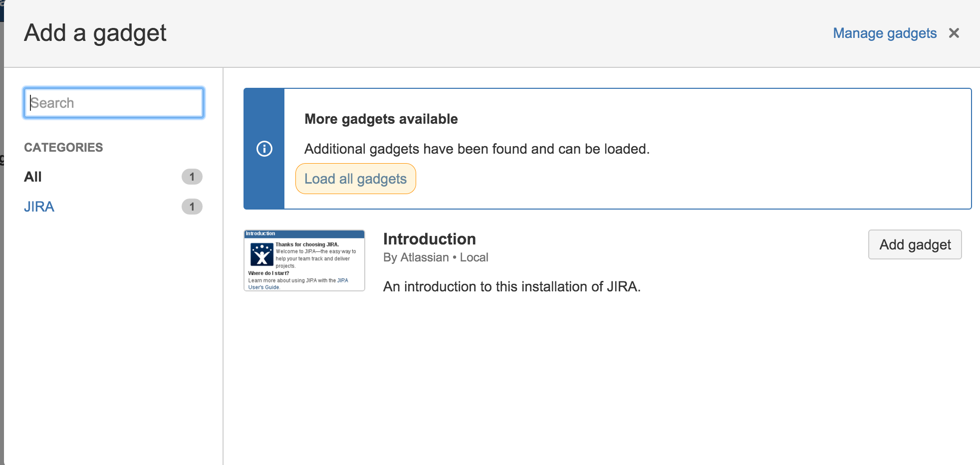 - You should see a dialog with all the available gadget. If not, please click the Load all gadgets link