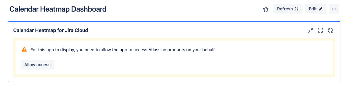 For all users using the app for the 1st time, the gadget will display a prompt to allow the app to access Atlassian products on your behalf.