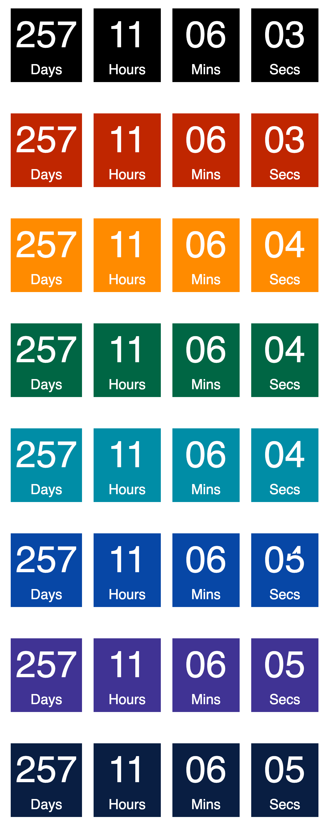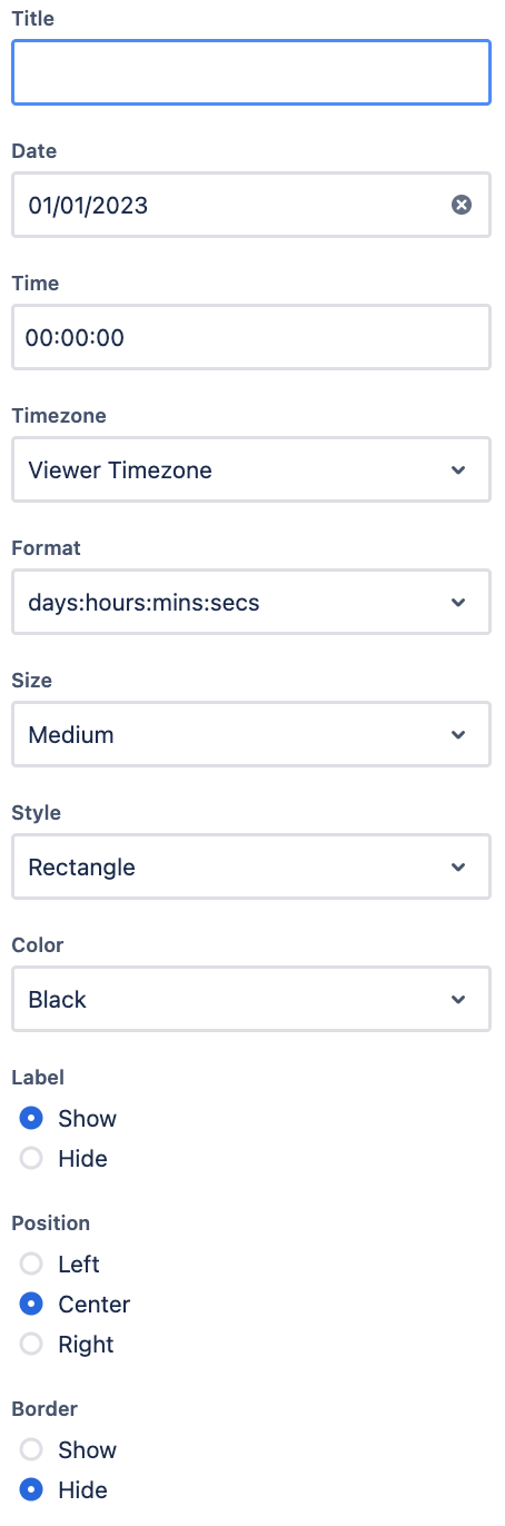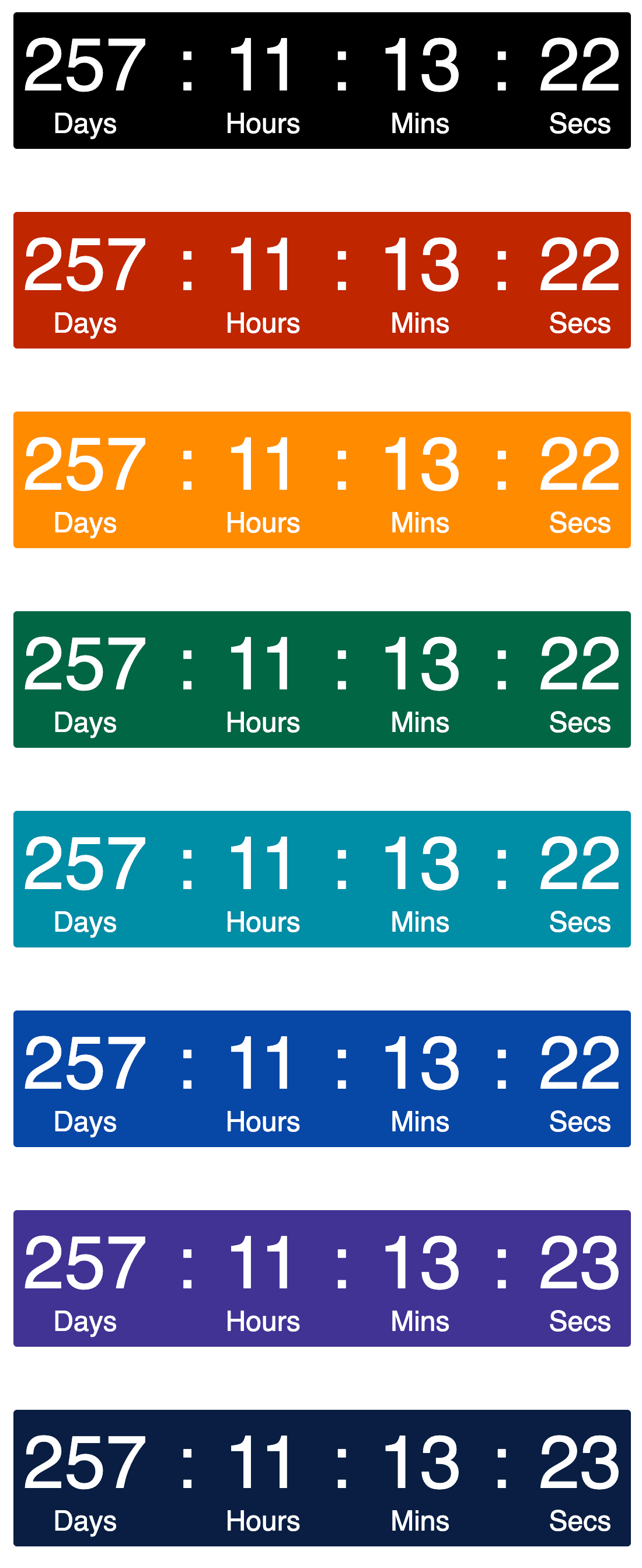 Format | days:hours:mins:secs | The display format of the counter. The available options are