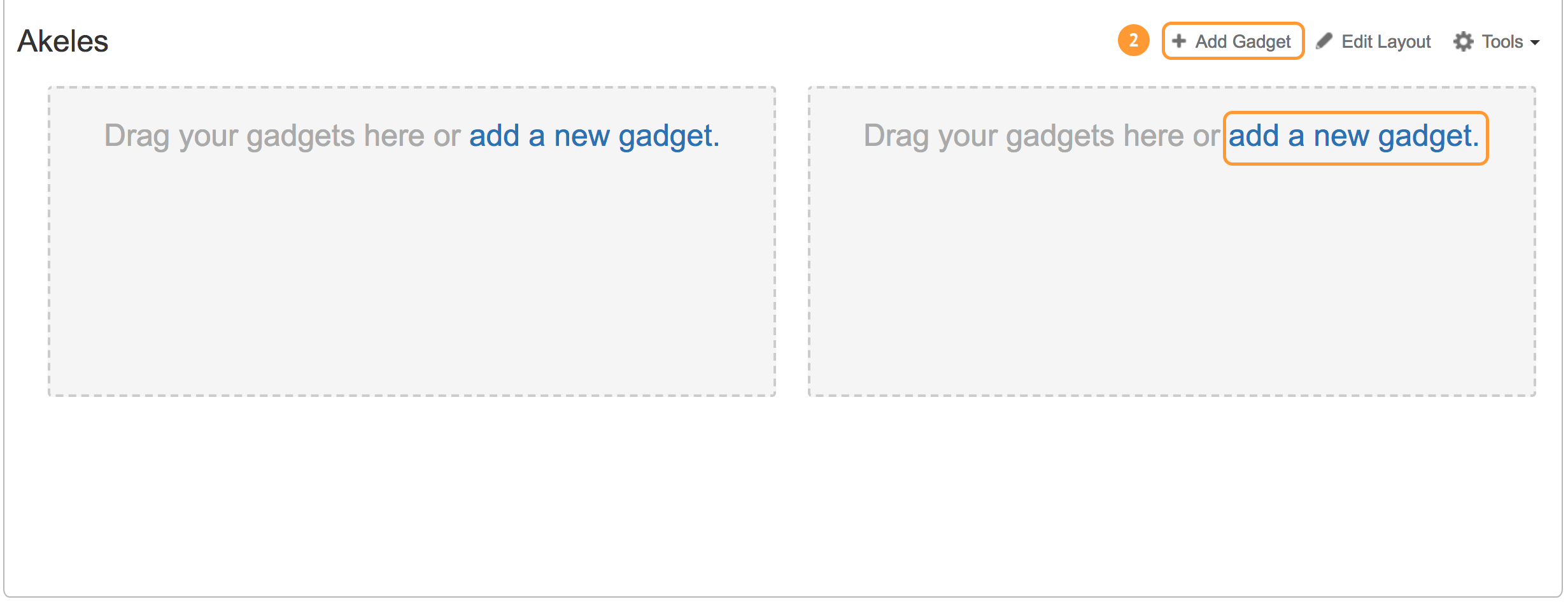 - On the dashboard page, click on Add Gadget on the top right hand corner.