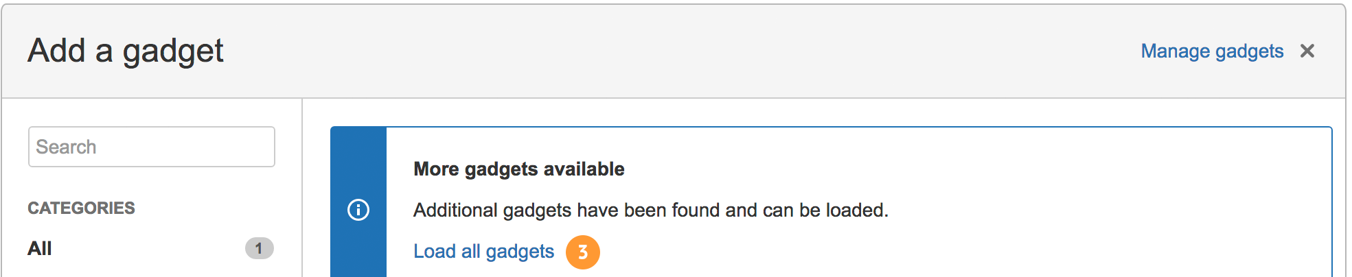 - A dialog Add a gadget will appear. If there are more gadgets available, click on Load all gadgets.