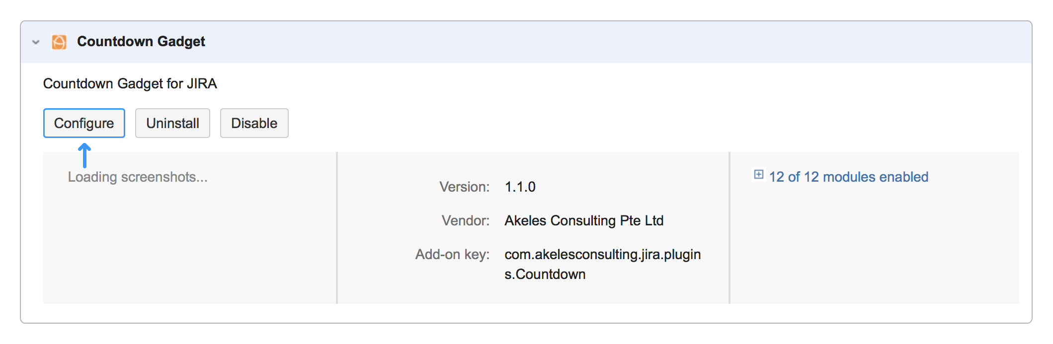 - Click on Countdown Gadget under User-installed Add-ons to expand the panel.