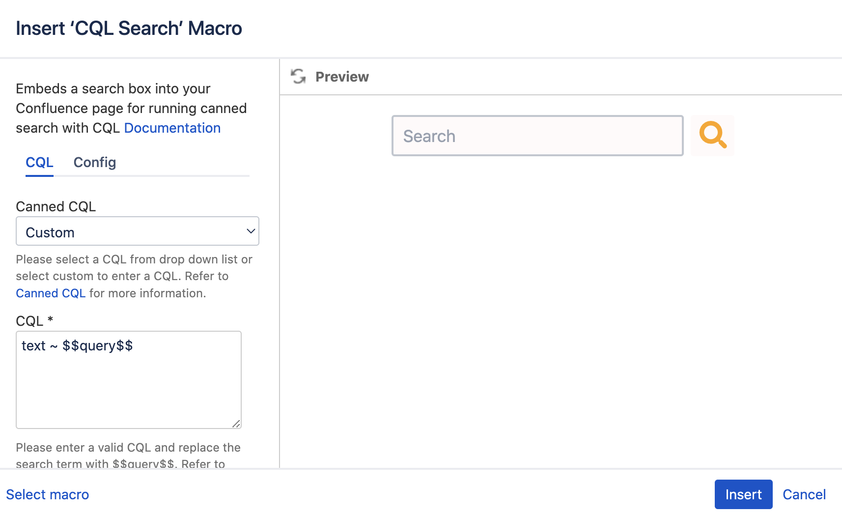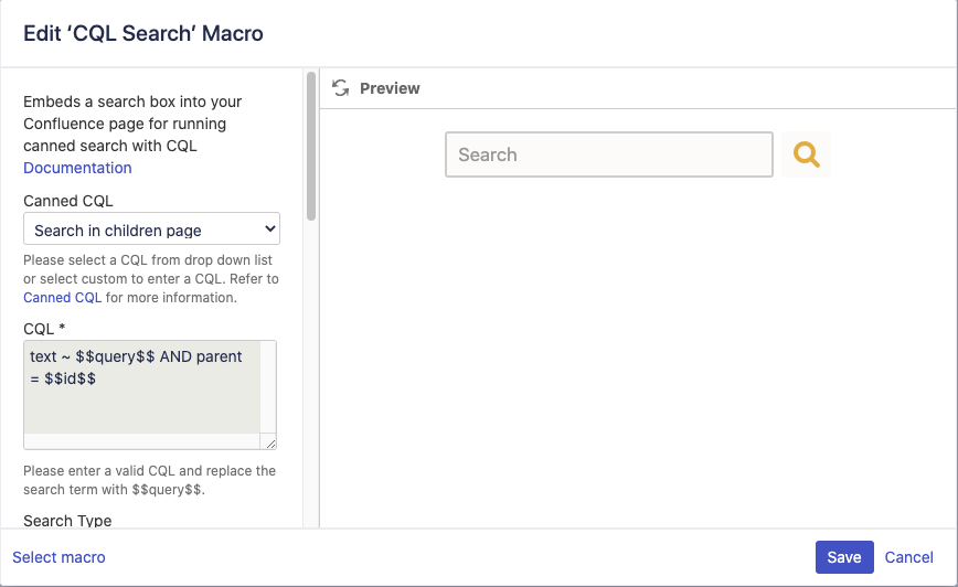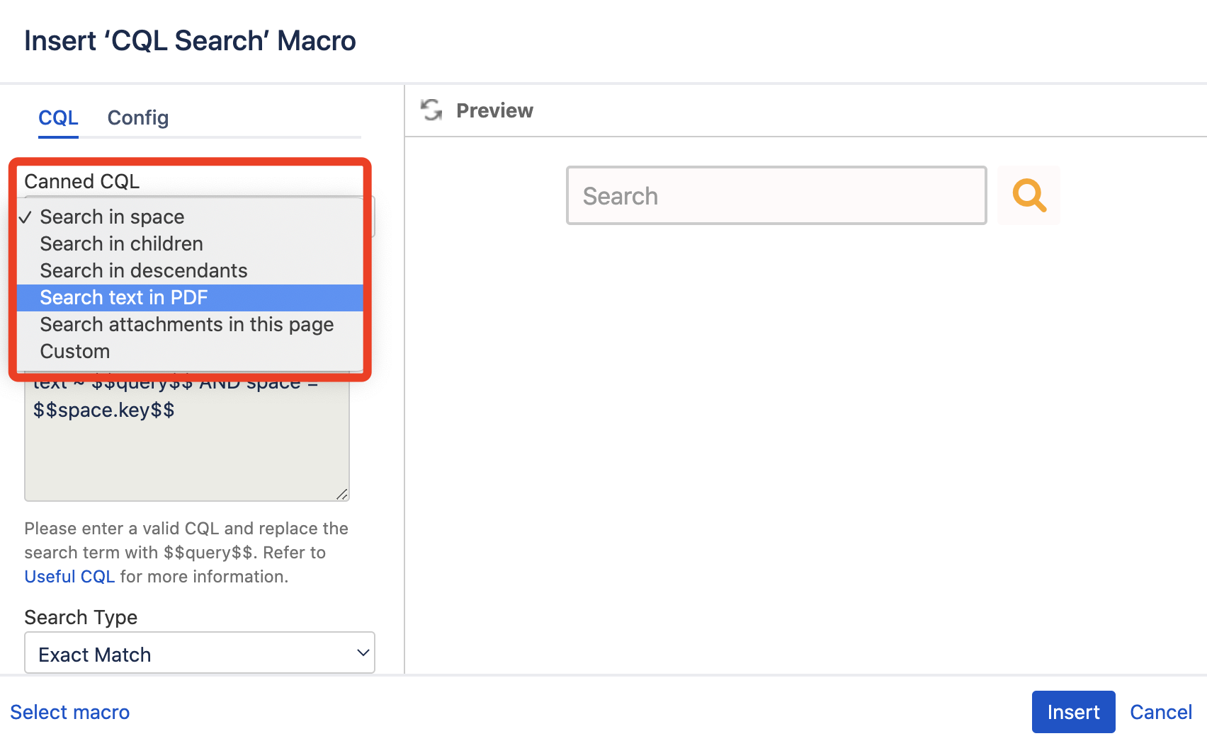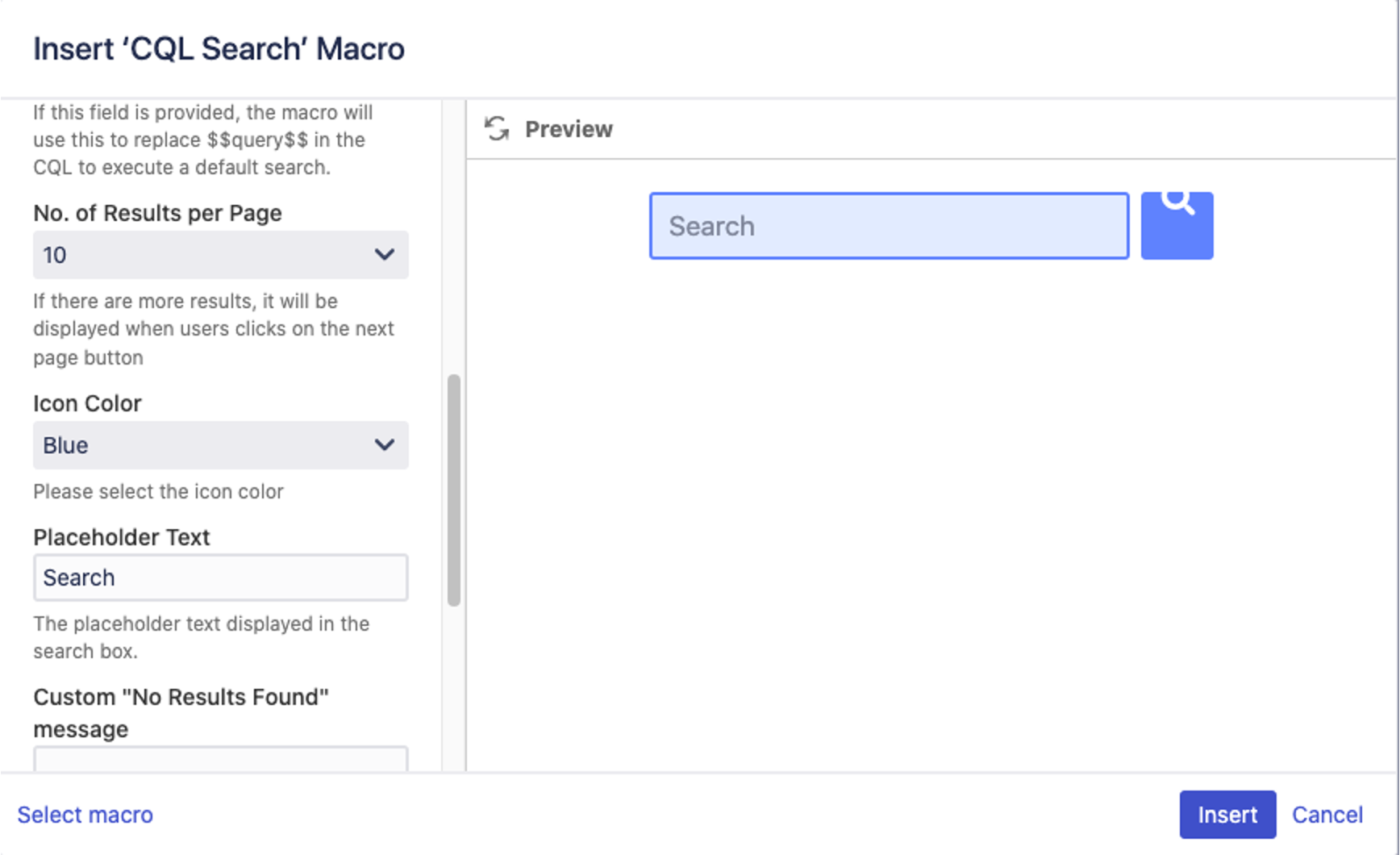 By default, the CQL Quick Search will always display the search options above the search bar. Now we have added a config to hide to search options and only display them when the user focused on the search bar.