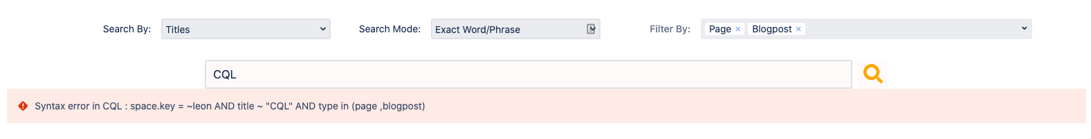 When the user executes a search using the CQL Quick Search Macro in the Personal Space, the following error will appear