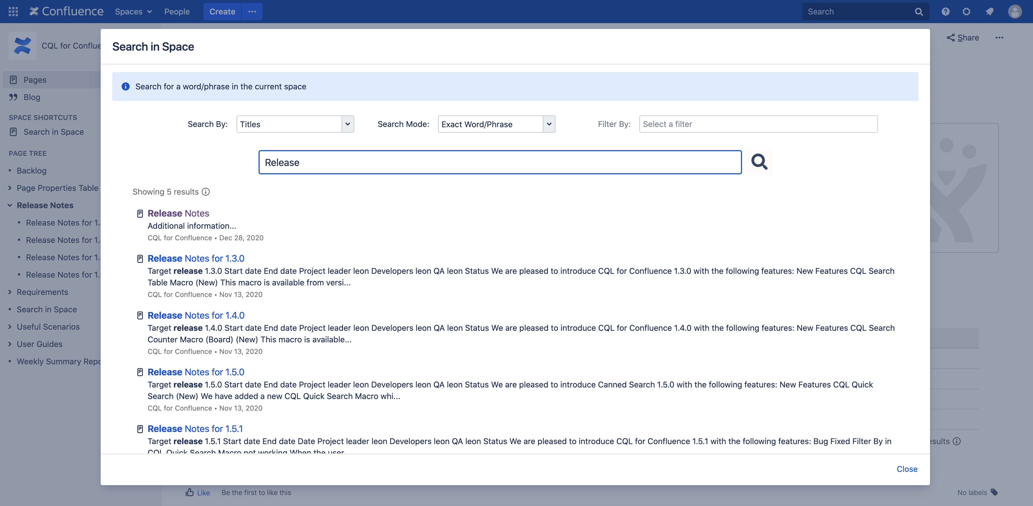 Clicking any of the 3 options will launch the search screen which is similar to the CQL Quick Search Macro.