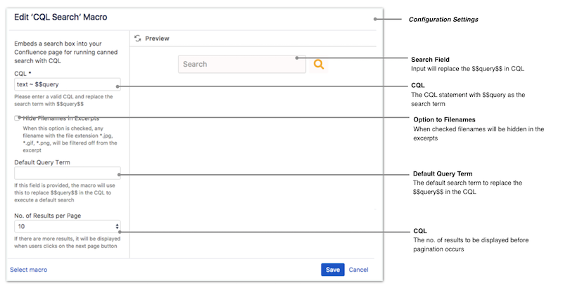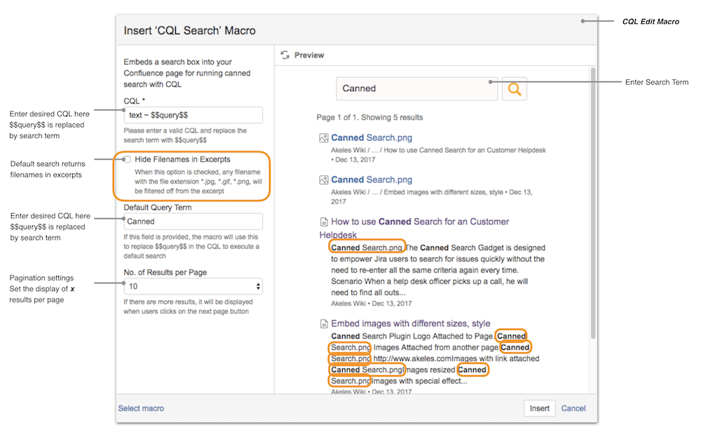 - From Confluence Edit Page, edit the CQL Macro which you wish to hide images filenames in the Excerpt.