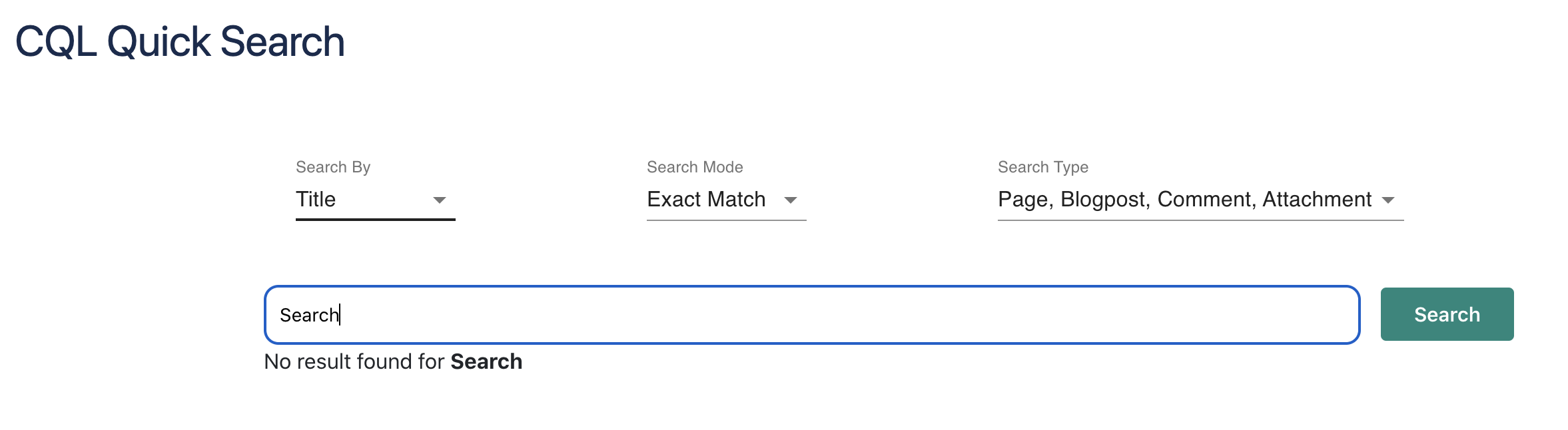 When the user selects Exact Match and executes a search using CQL Quick Search page, no result was found.
