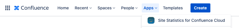 In the top navigation bar, click Apps then Site Statistics for Confluence Cloud.
