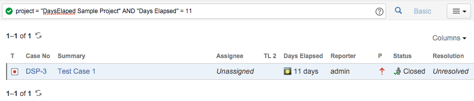 - The Traffic Light field is searchable by Days Elapsed: = 0, >= 0 etc.