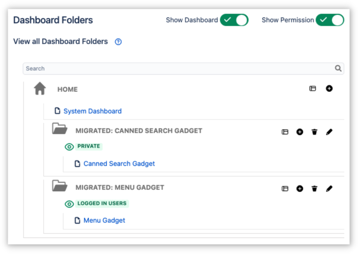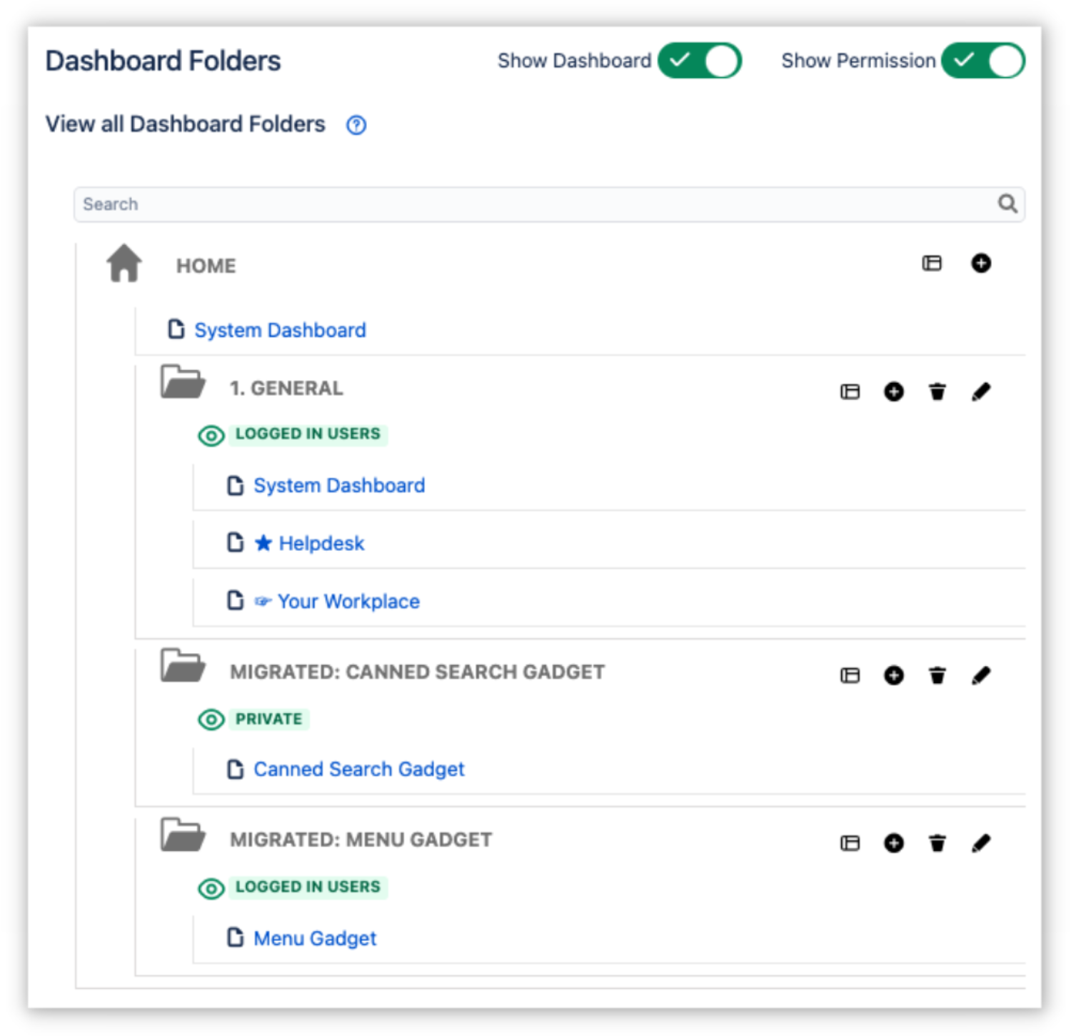 From v2.0.0 onwards, this extra permission on the top Dashboard has been removed. The top most Folder (Home Folder) is now public and any Dashboard placed in the Home Folder will not have permission control, i.e. visibility will be controlled by the individual Dashboard viewer permission.