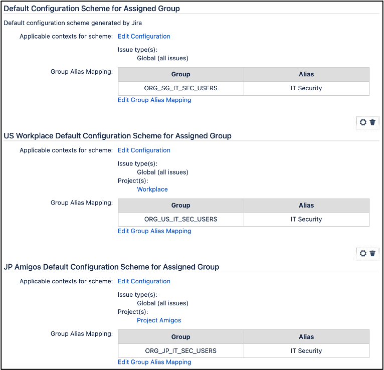 Users are able to search for alias group name across different projects that represents different underlying Jira groups, e.g. Jira group name: <Country Code>-level-1-support, Alias name: Level 1 Support