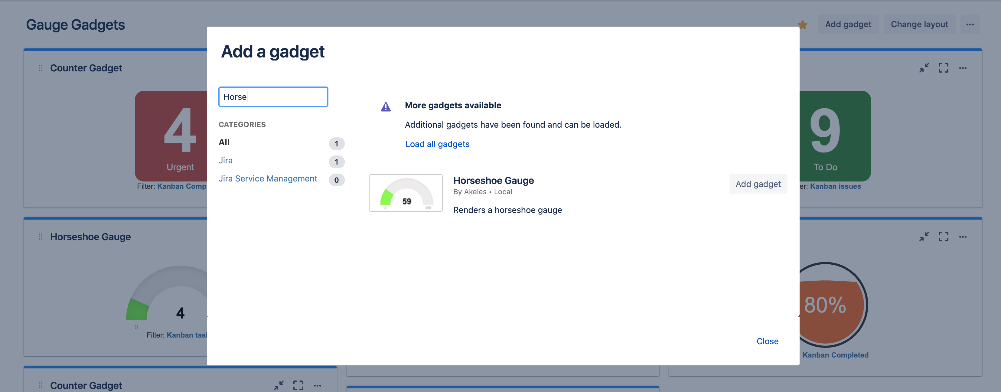 Issues | Filter or JQL can be used to search to display the number of issues shown in the gauge gadget |