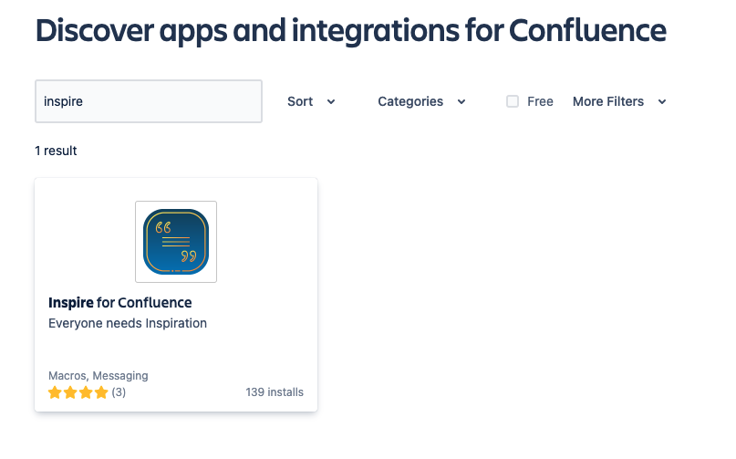 Open the Atlassian Marketplace and search for "Inspire for Confluence".