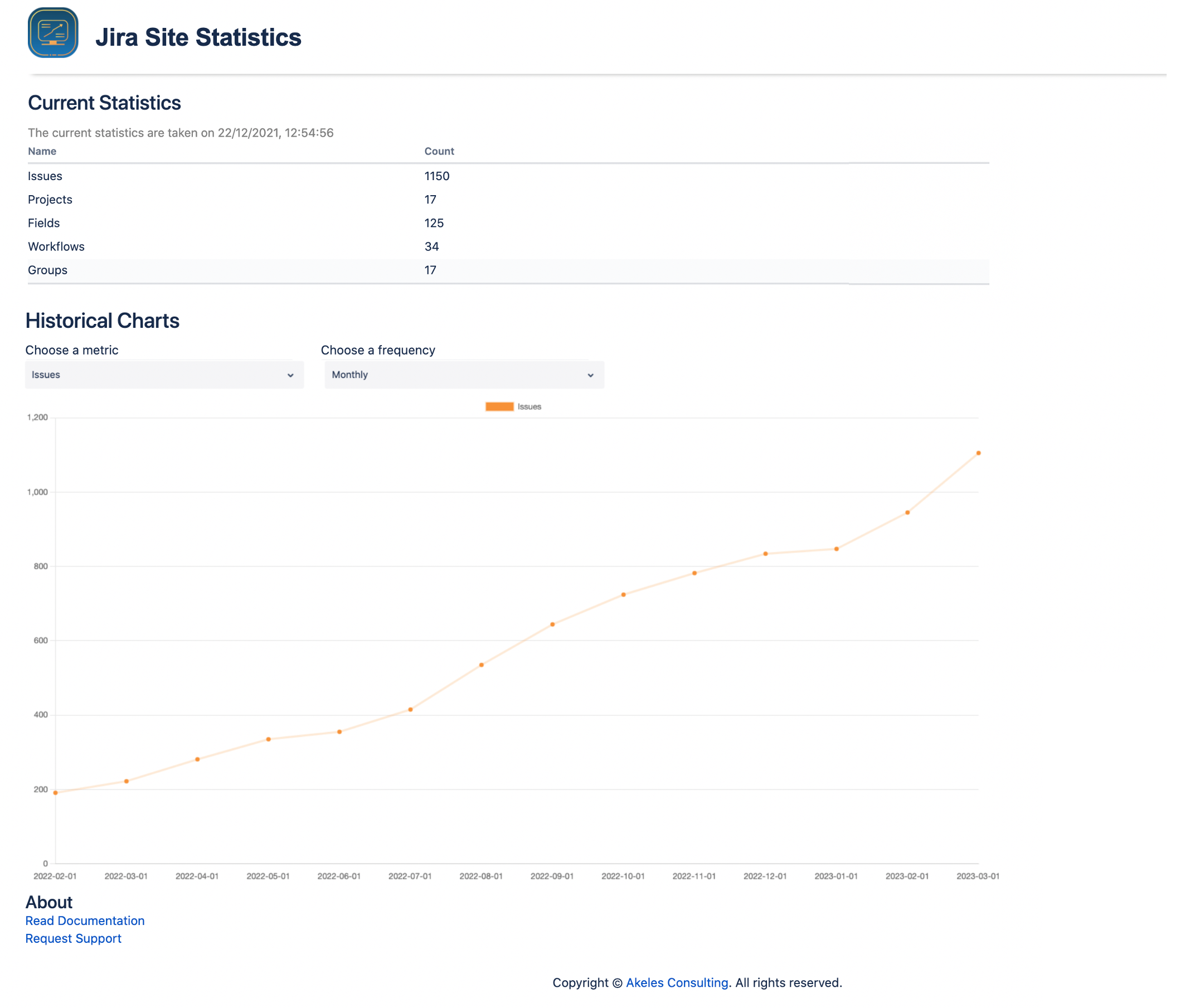In addition, the app takes snapshots of the statistics daily and saves it so that administrators can review the historical values based on the frequency selected.