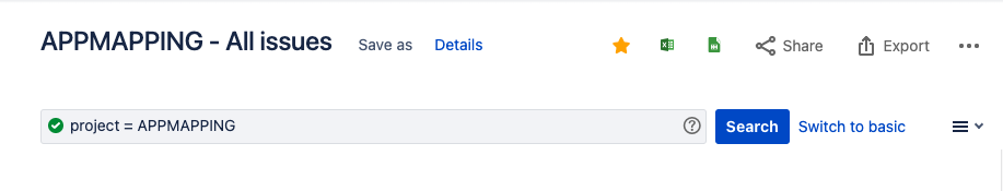 Enter the JQL below and click on the Search button to find all issues in the APPMAPPING project