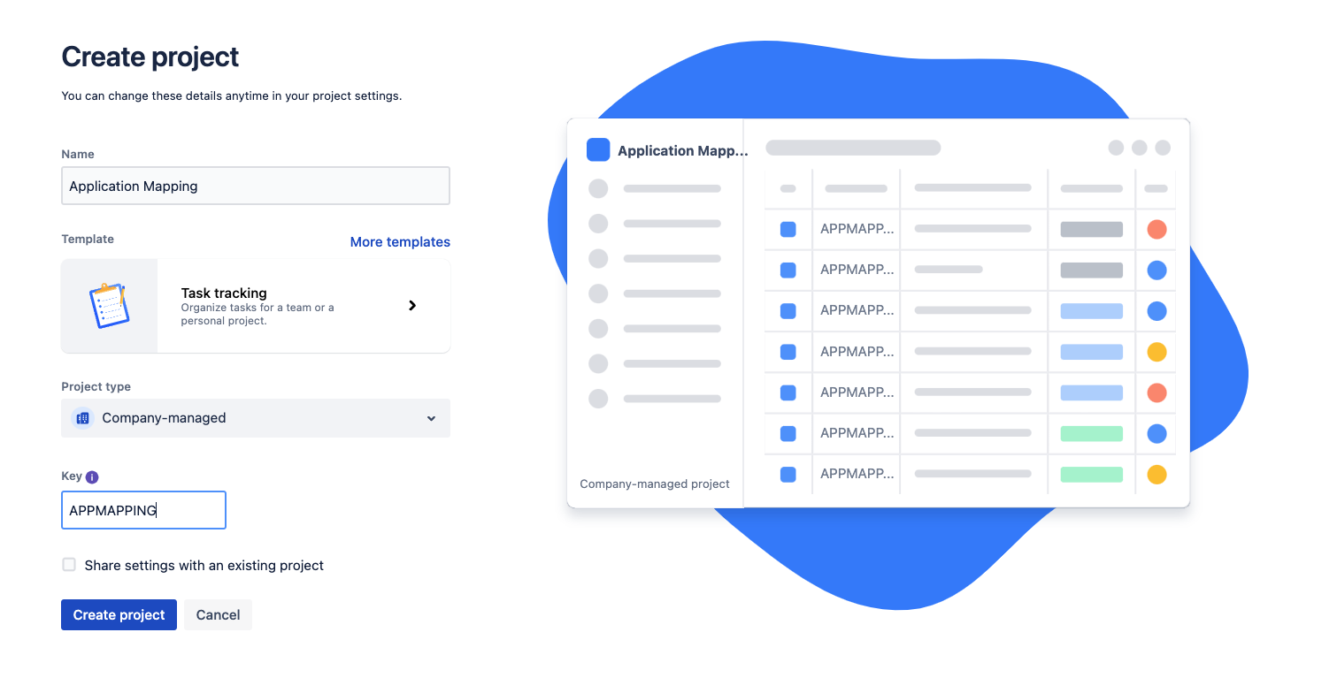 The App Mapping project is only an example. You can use another Jira project with a different issue type as a replacement.
