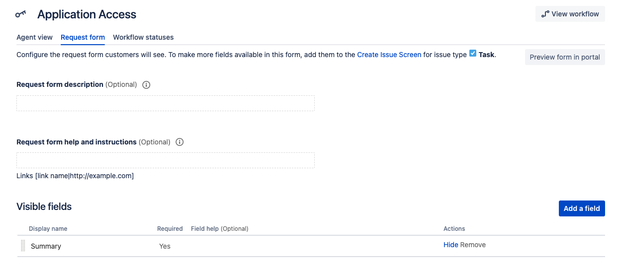 We need to clear the existing request types and create a new request type to link to the Task issue type