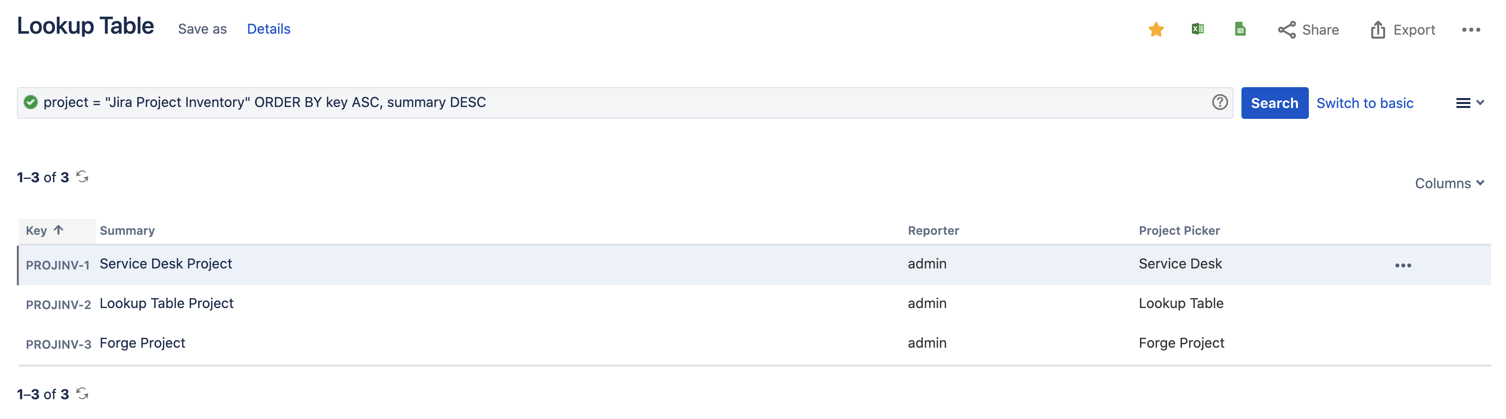 Create a lookup project, Jira Project Inventory (PROJINV), which stores the manager for each Jira Project. It has the following fields: