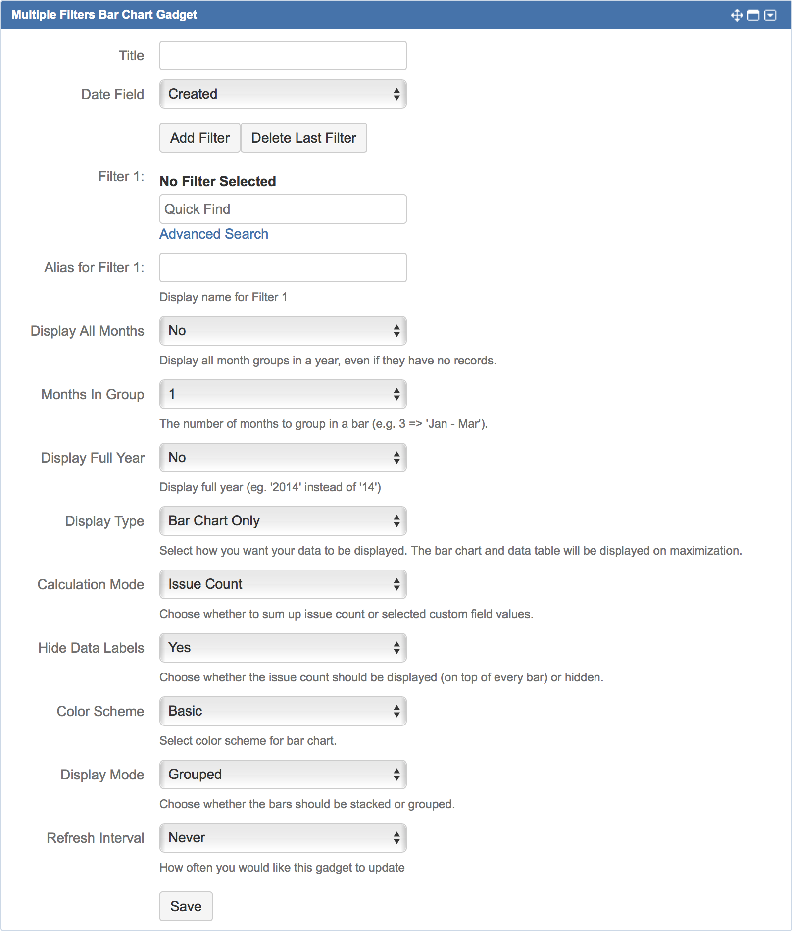 How to Configure Multiple Filters Bar Chart Gadget 1.x