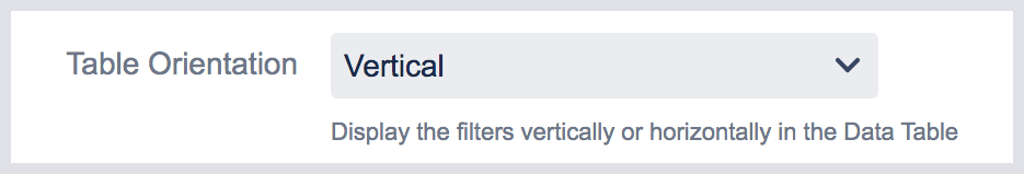 With the table orientation setting, you can now choose to display the filters horizontally or vertically in the data table.