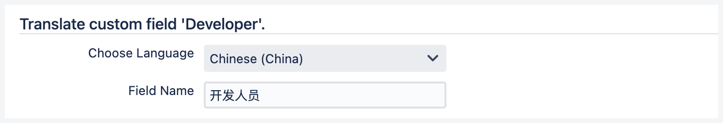 For example, a custom field is created in English with the name “Developer“, and has a translation in Chinese with the name “开发人员“.