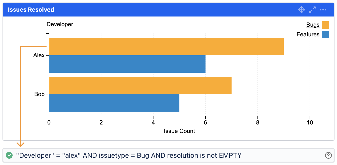 When clicked on the links to the issue navigator, the field does not exist as it is using the translated name. | When clicked on the links to the issue navigator, JQL is valid as it is using the original name during creation. |