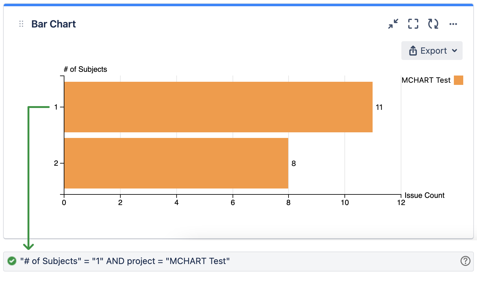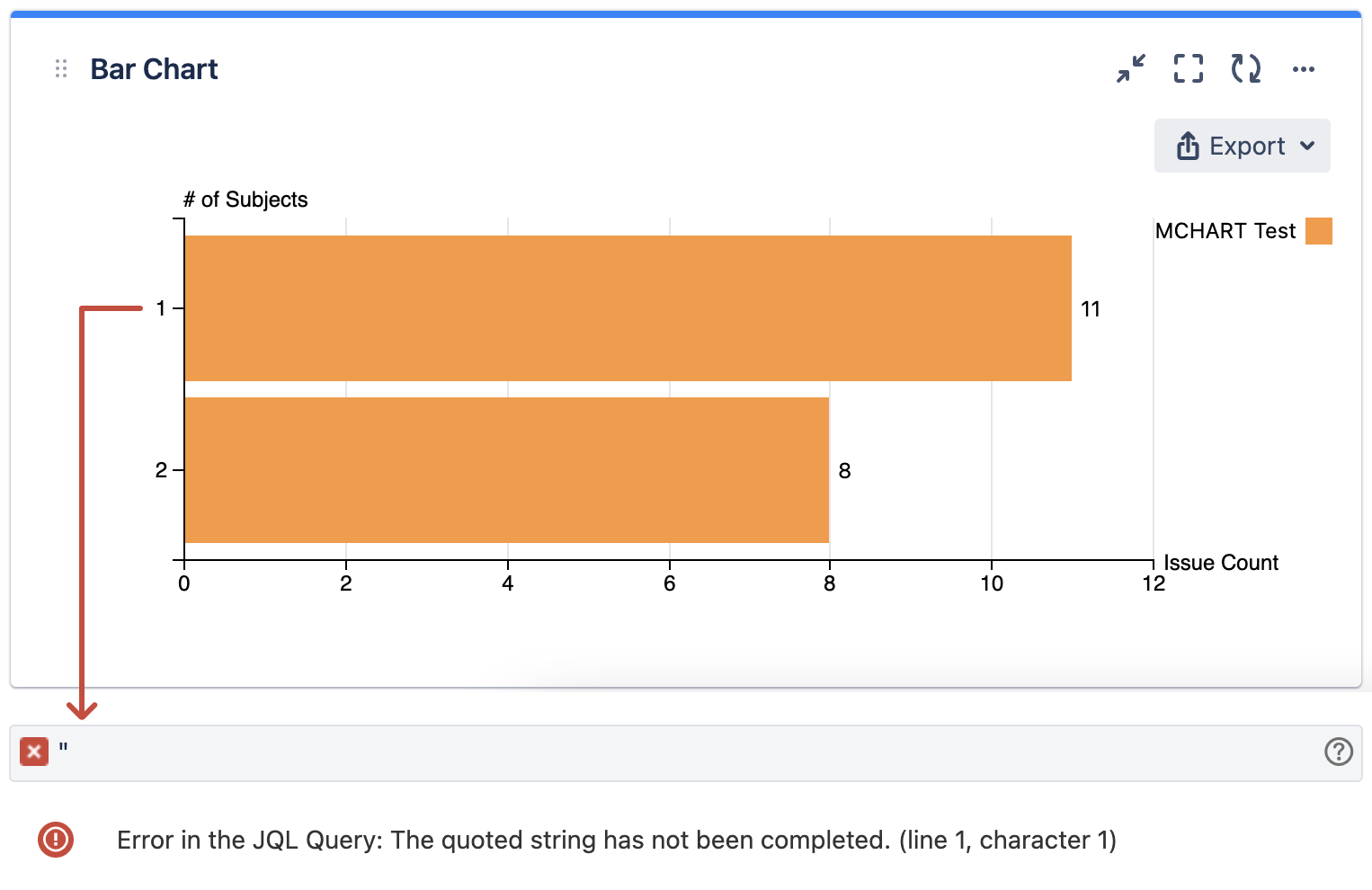When clicked on the chart which links to the issue navigator, “Error in the JQL Query“ error message is displayed.