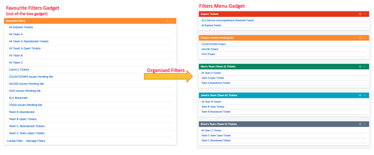 Before: Only Favourite Filters Gadget available to display favourite filters on Dashboard.