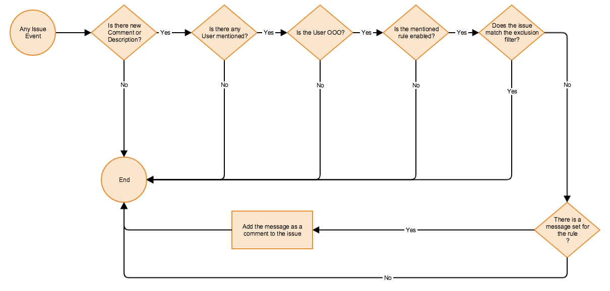 - If the user mentioned is currently out of office and wish to trigger an out of office reply into issue comment, it will post the Out of Office message configured as a comment