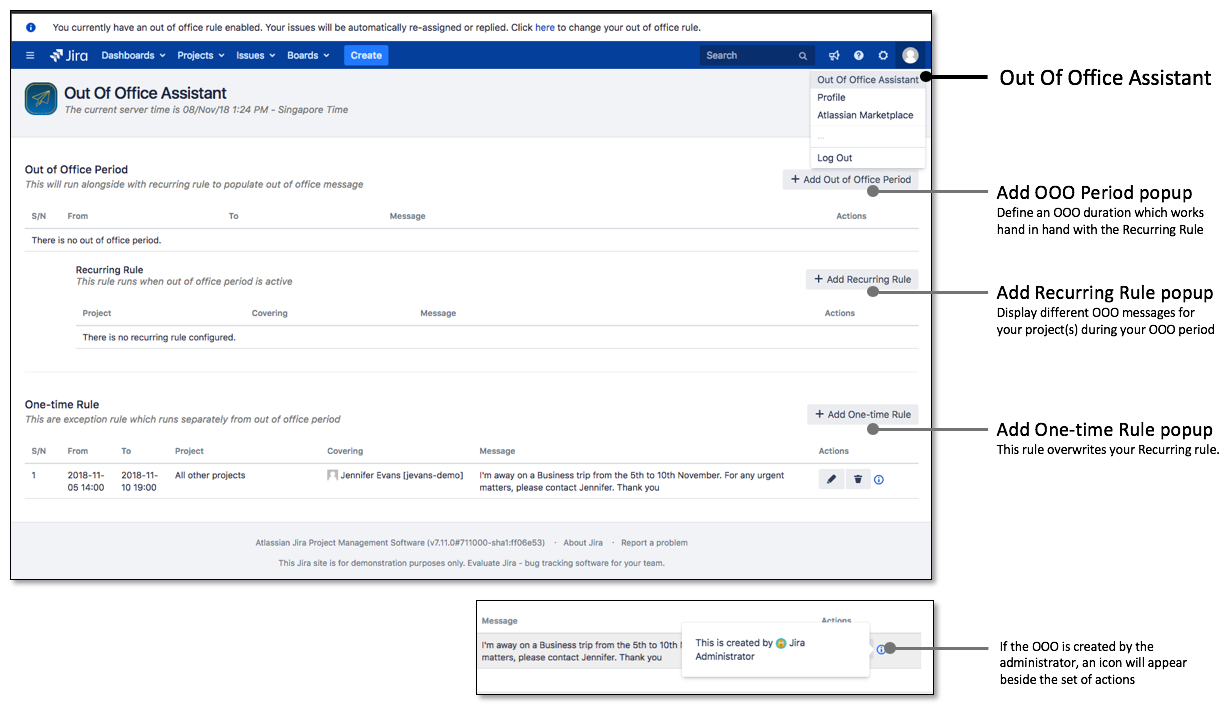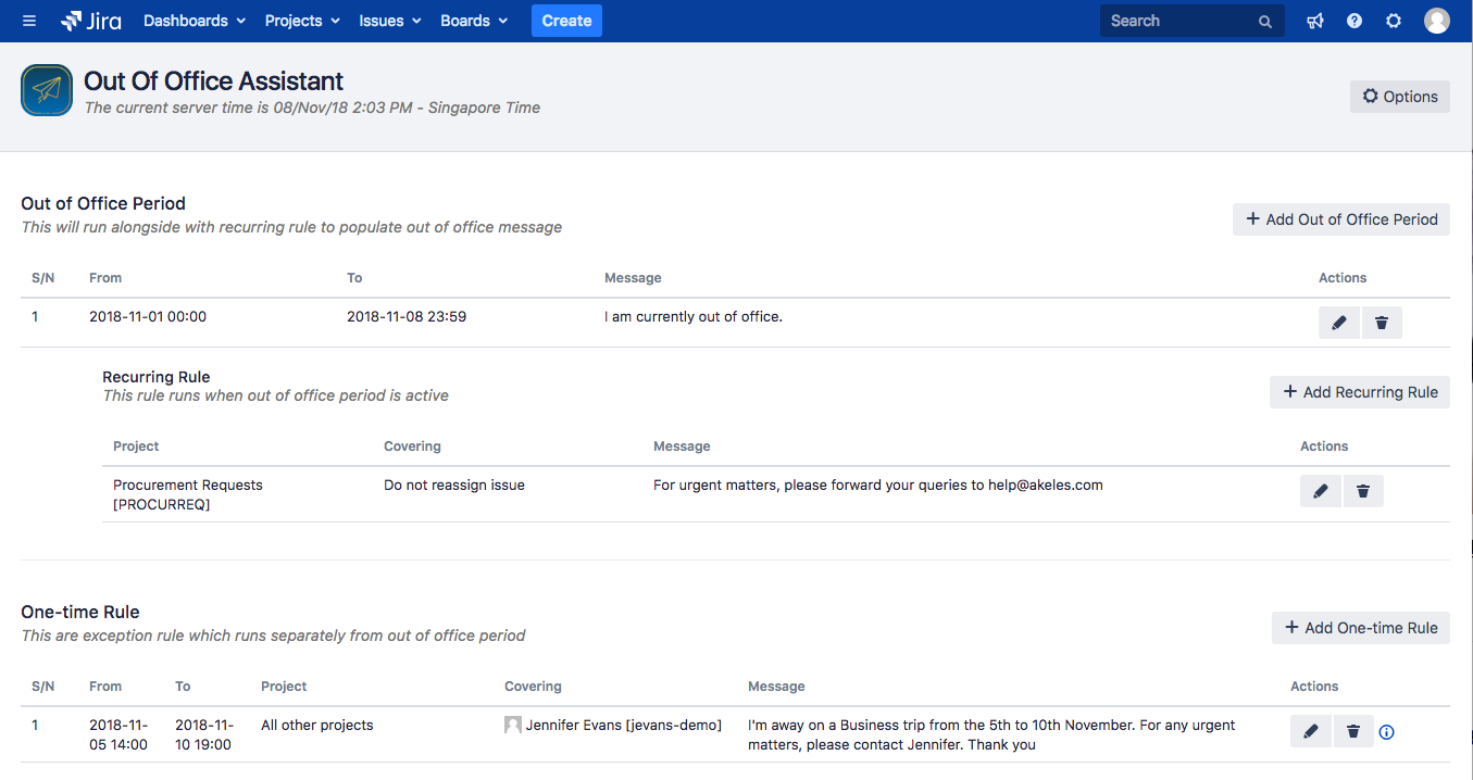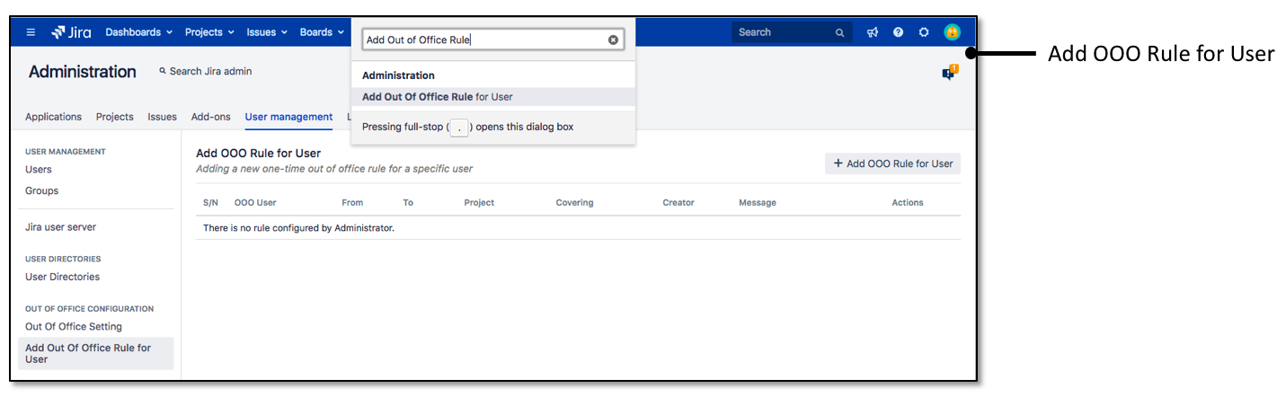 From the user's perspective, the OOO rule can be accessed. It is possible to modify the One-time Rule created by the Jira Administrator
