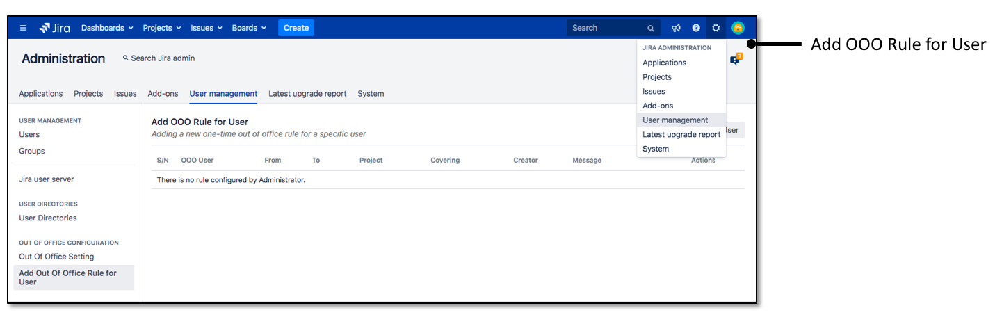 - Click on Add Out of Office Rule for User button near the top right