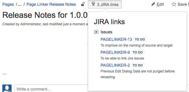 For more details on how to use the new features in Page Linker 1.0.0, please view How to link a Jira issue to a Confluence Page