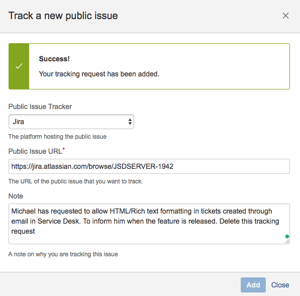 Click on the Add button to submit the request. It will check whether your Jira server can access the public issue.