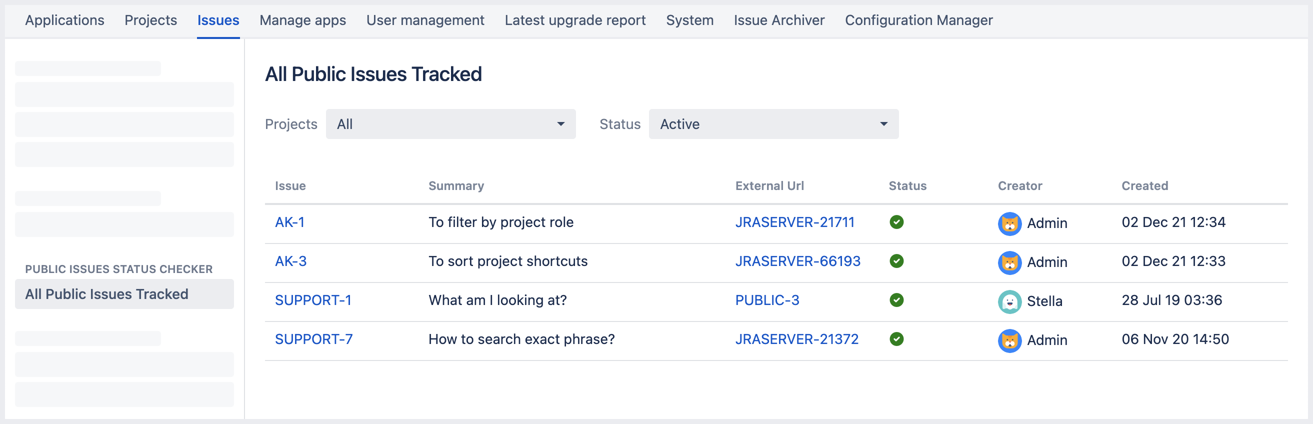 Jira administrators can now view all the public issues tracked, which can be accessed at Jira admin → Issues → All Public Issues Tracked.