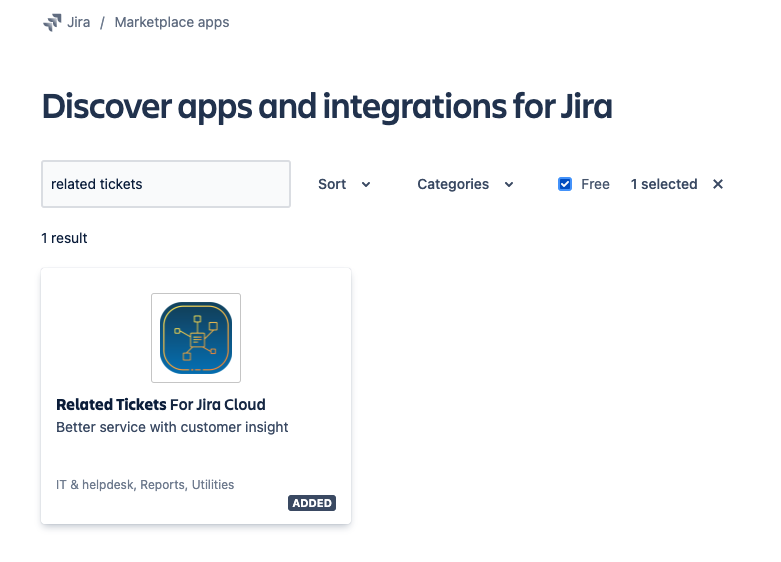 Type Related Tickets for Jira Cloud into the search field and hit the Enter key.